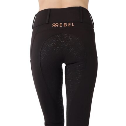 Montar REBEL Rosegold Logo Bit Chain Full Grip Pull on Riding Tights, Black