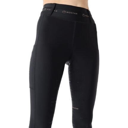 Montar REBEL Tone in Tone Logo Pull on Full Grip Riding Tights, Black