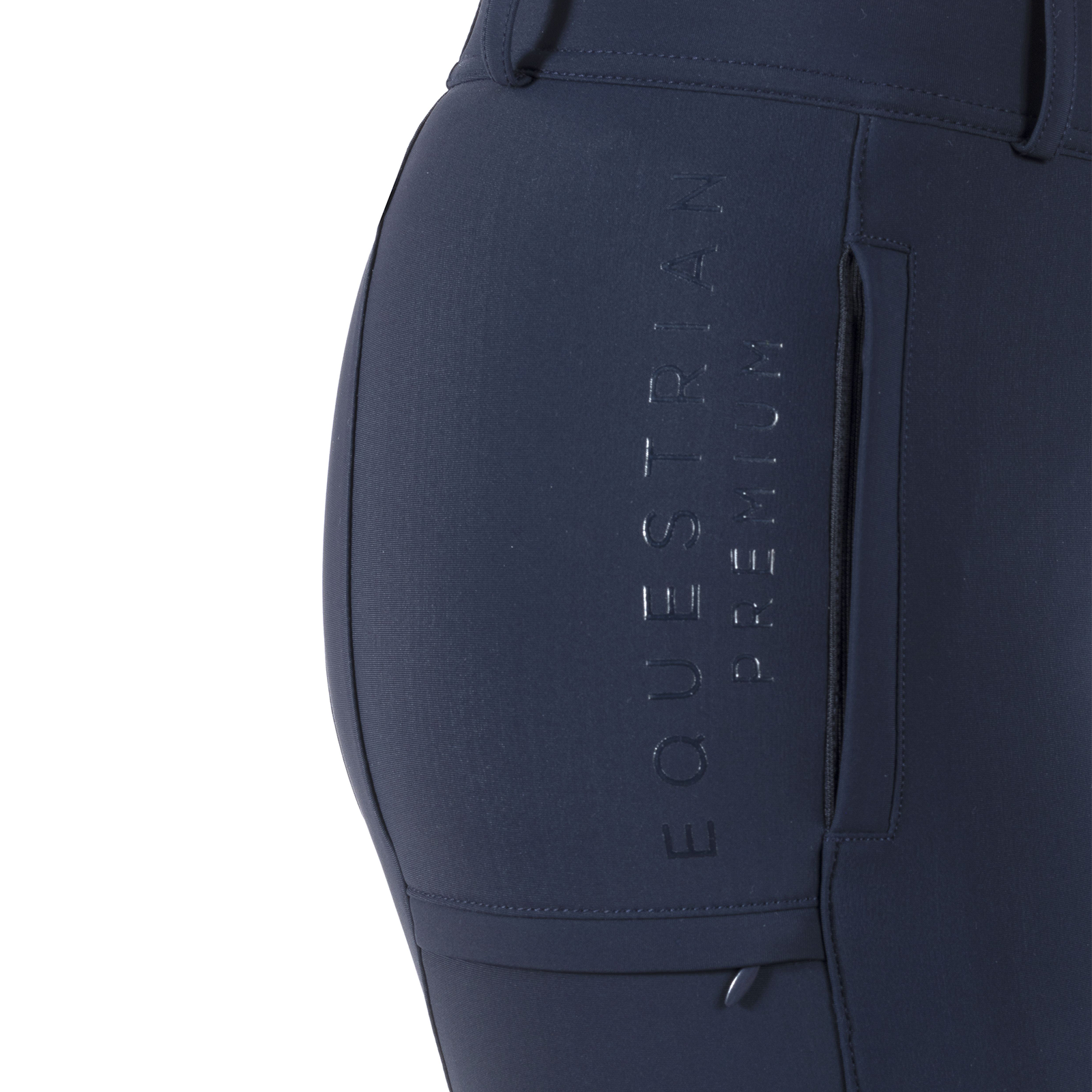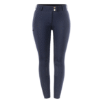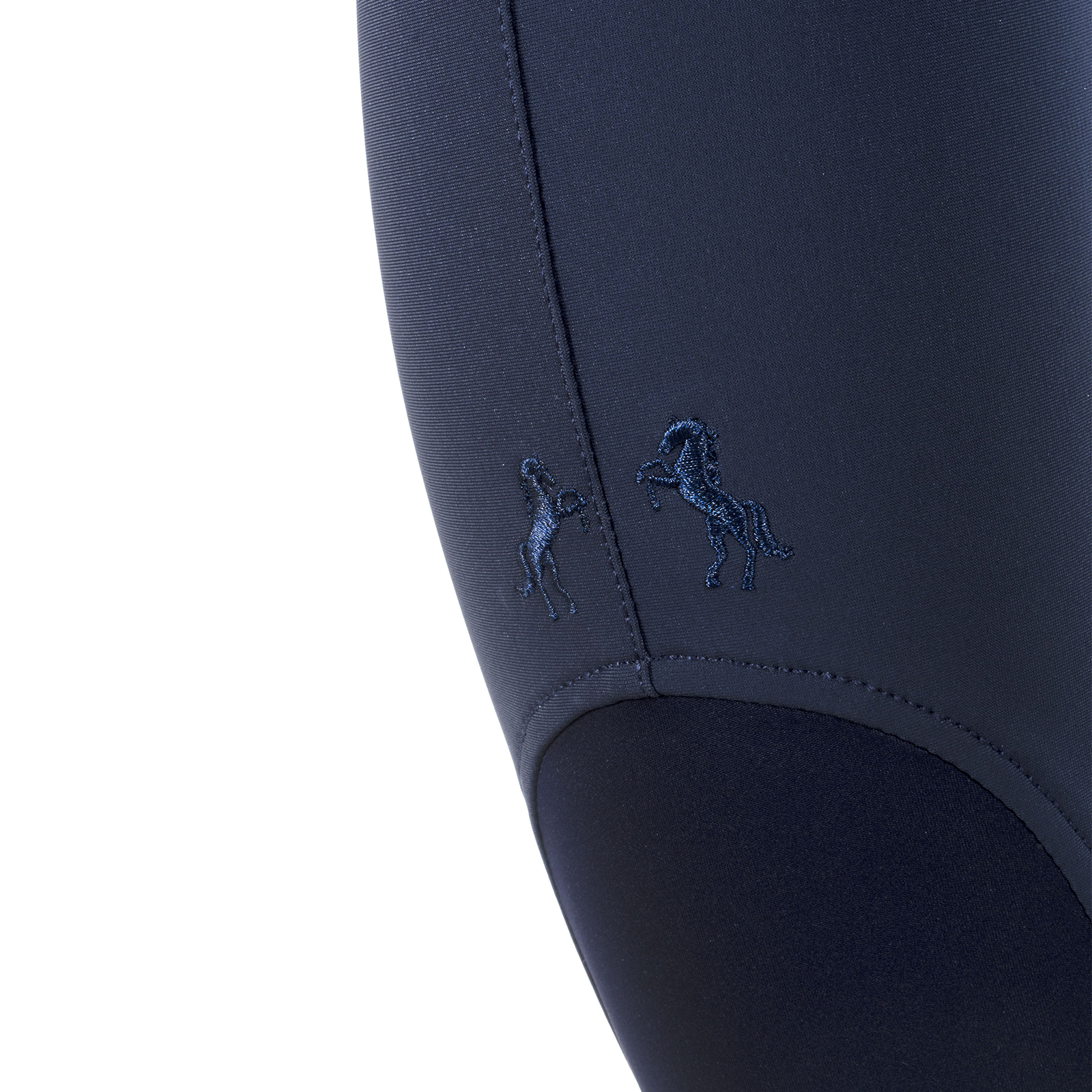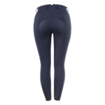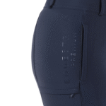 Elegant breeches made from a comfortable functional fabric. Closable seam pockets. Mobile phone pocket on the right thigh, can be closed with a zipper. High-quality heraldic logo embroidery on the side leg, decorated with gold-colored crystal stones. Two tonal horse embroideries at the hem. Elegant, tonal prints on the side leg and on the back yoke. Gold-colored details and highlights. Elastic leg cuffs, perfectly color-coordinated.