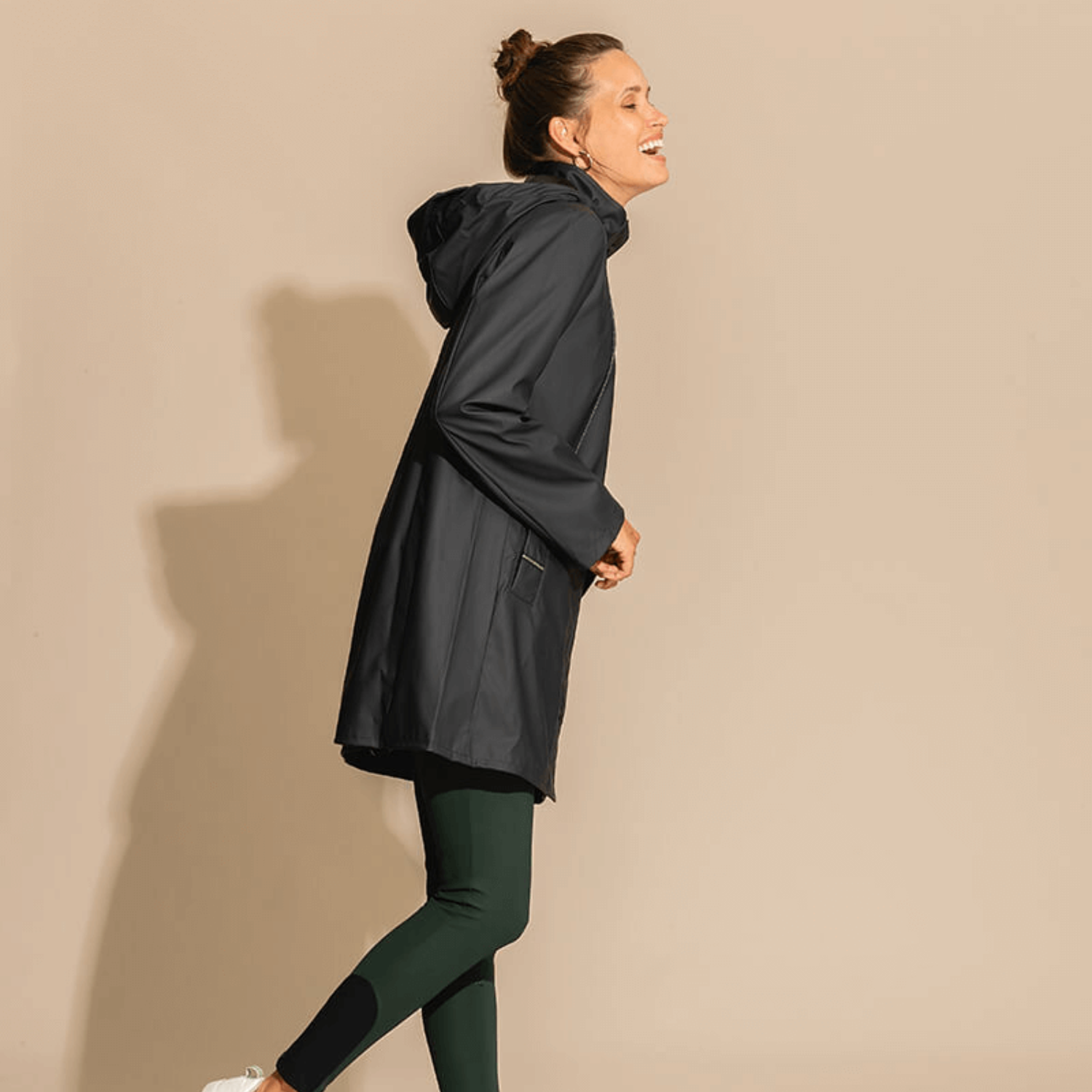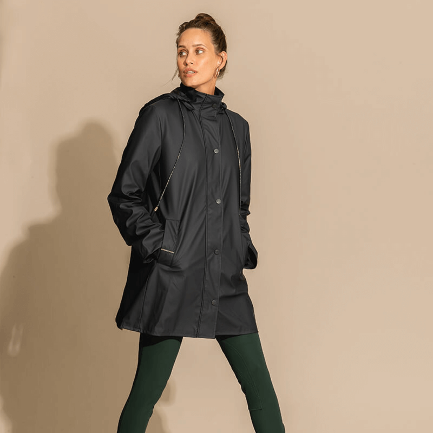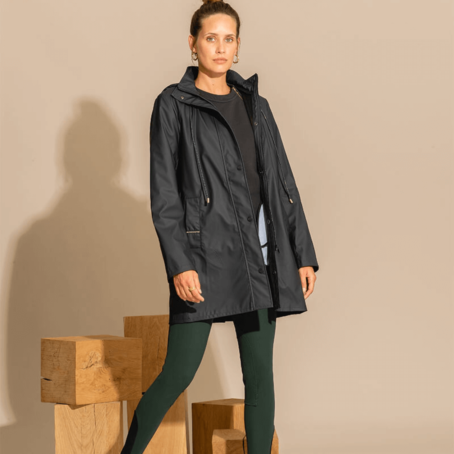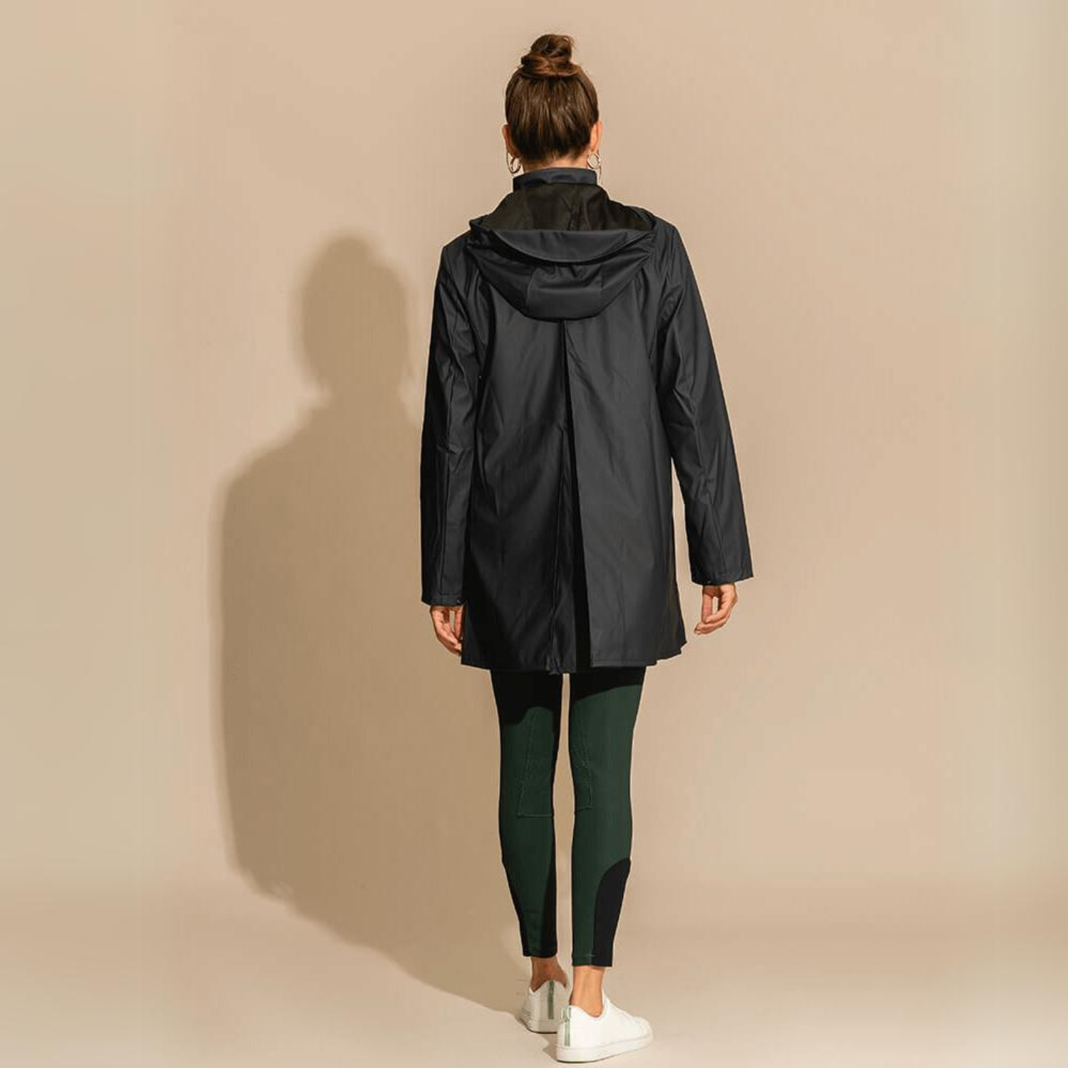 No lining, the jacket is very light and ideal for rainy spring or summer days. Princess cutout on the back. Long comfort pleat for ease of movement. Two eyelets under each arm will allow for better breathing.