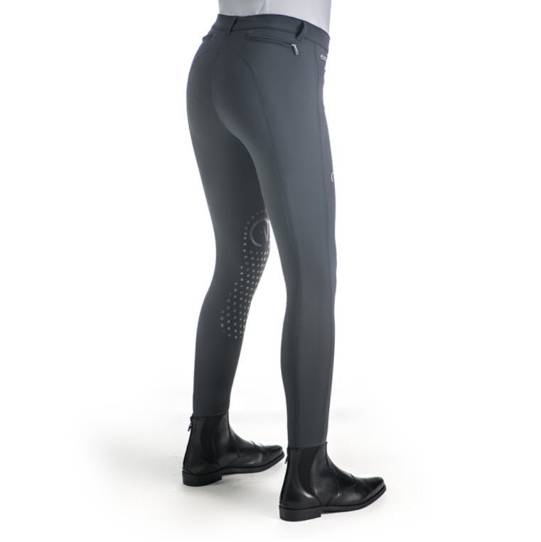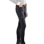 Riding Breeches with front pockets and zip detail on the back, superior performance and style guaranteed thanks to the perfect ergonomic cut developed by Italian designers and the use o fthe best technical materials for sport. The revolutionary fabric, 100% made in Italy jersey, gives a perfect fit and adherenc eto the leg, a comfort never experienced before, breathability and contact with the horse. Performance is guaranteed with the patented COMBRAX button and the innovative grip, carefully positioned at the knee, which allows greater freedom of movement and stability in the saddle and blocks the sliding of the trousers and shirt on the belt.