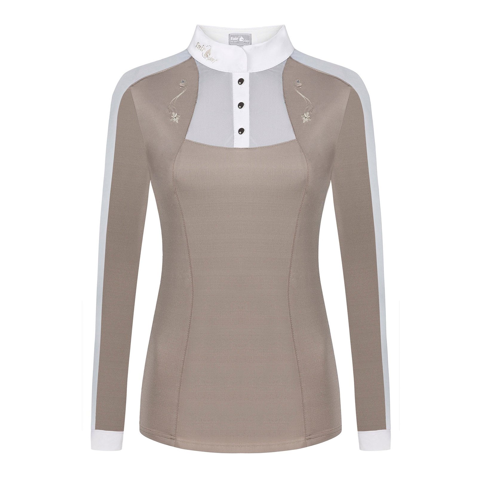 • Decorative embroidery with jets on the front, back and collar
