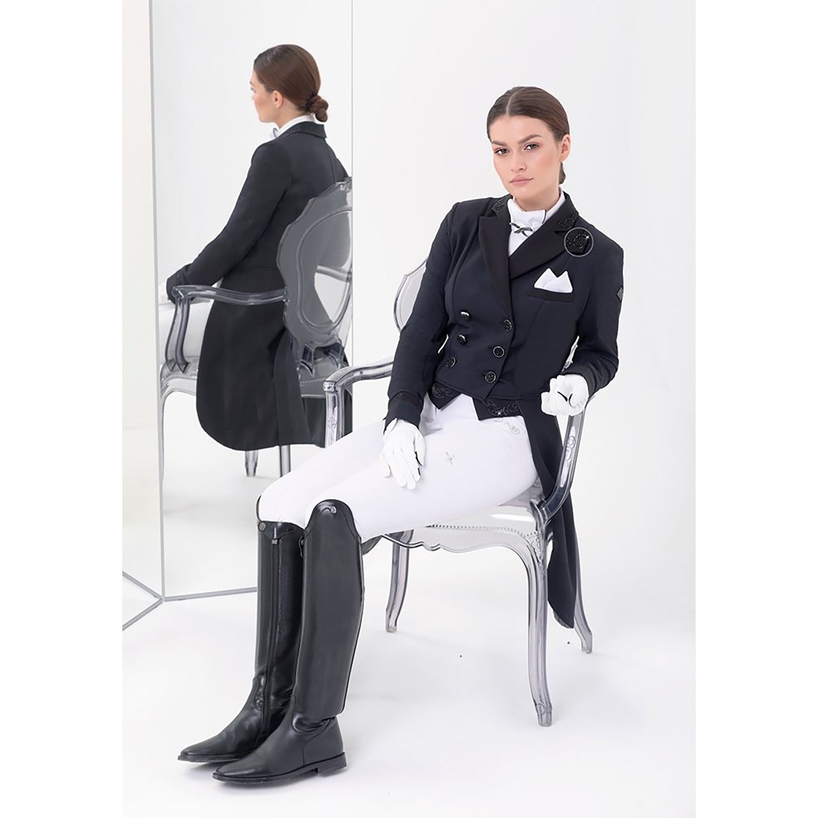 Fair Play show jackets can be machine washed in a cold, gentle cycle. Do not dry clean. Tumble dry on low and use a cool iron if needed.