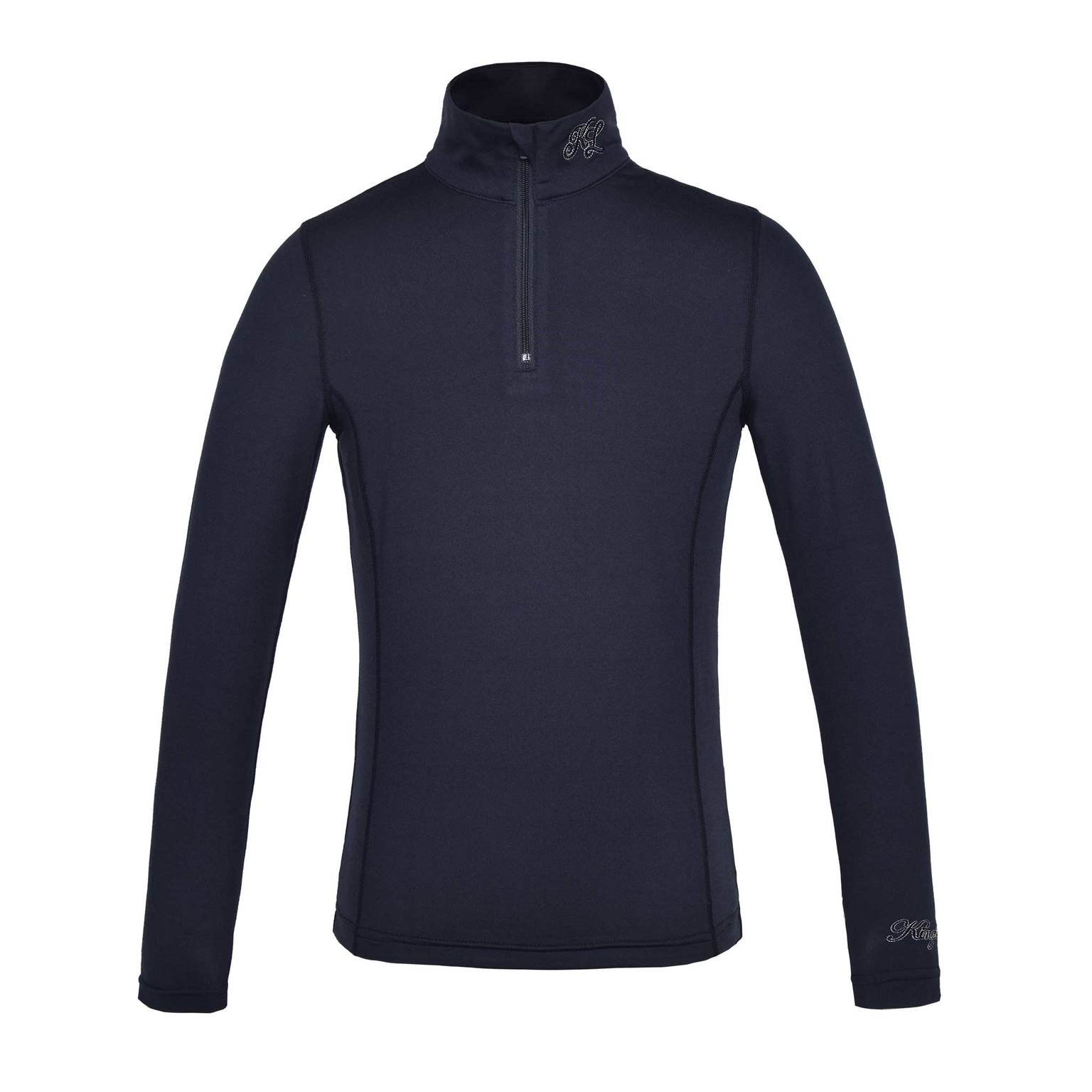 Soft stretchy girls technical training shirt with ½ zip and a feminine fit. The shirt is breathable and quick dry. Embossed print on side panels and auto lock zipper puller, chin guard and flatlock seams. There is also an embroidered logo on the collar and the left sleeve.