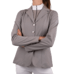 The Bonnie competition jacket has small crystals on the collar. The crystals are tone in tone with the fabric. There are 2 pockets in the jacket. It is made of a very functional softshell fabric which always makes you feel the freedom and well-being to perform at the competition. There is mesh lining in the body part and no lining in the sleeves to increase mobility when riding.