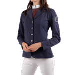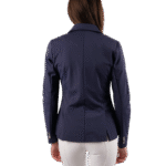 The Bonnie competition jacket has small crystals on the collar. The crystals are tone in tone with the fabric. There are 2 pockets in the jacket. It is made of a very functional softshell fabric which always makes you feel the freedom and well-being to perform at the competition. There is mesh lining in the body part and no lining in the sleeves to increase mobility when riding.