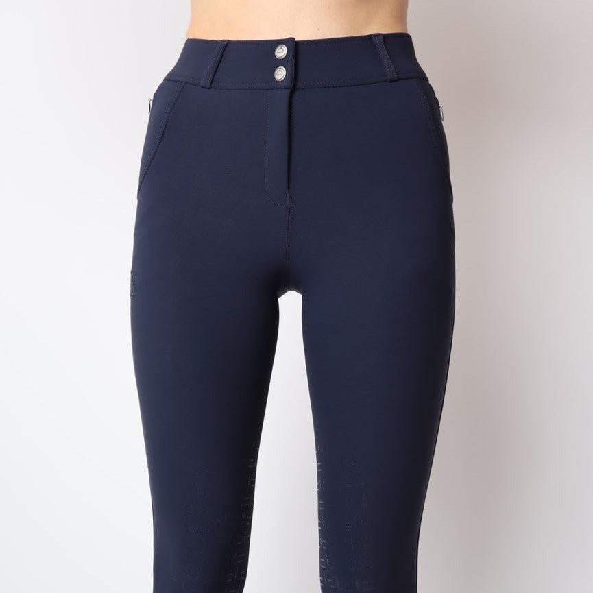 Give your training that extra “something” in these Briella high waist breeches. Briella is made in our super comfortable 4-way stretch Yati fabric. Other than having a beautiful look the fabric provides a lot of different features to make the rider as comfortable as possible. The fabric is water repellent, dirt repellent and moisture-wicking. The breeches are equipped with two front pockets and two small zippers. On the back is fake pockets decorated with small crystals for a beautiful look.