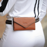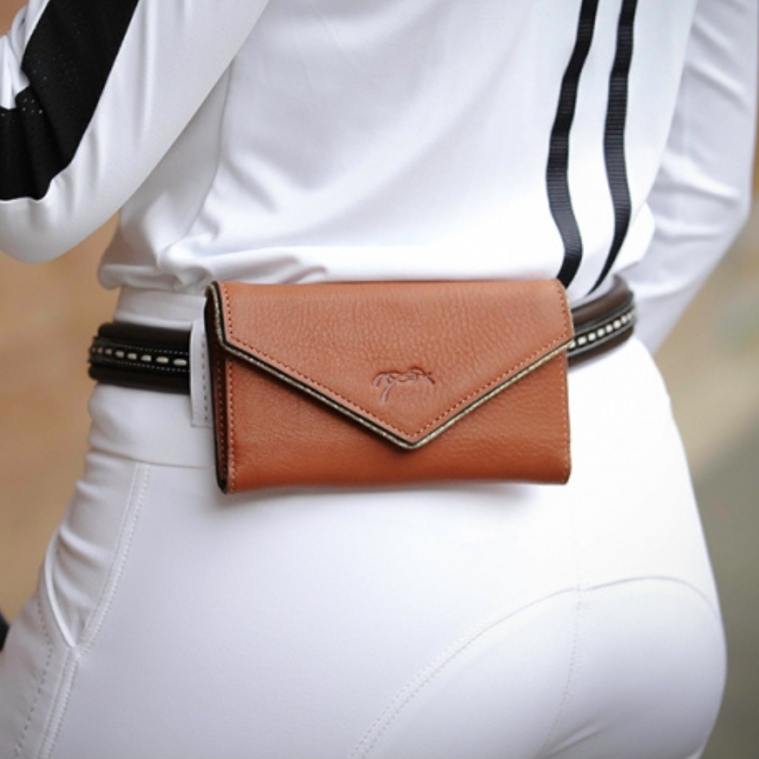 So convenient and fancy, the leather phone pocket is essential to stay connected while riding and to carry our phone everywhere we go. It fastens on the belt thanks to two buttons. It is light and easy to put on. It can have any kind of phone, even the bigger ones and remains stable at any speed. The phone cannot disturb the rider.