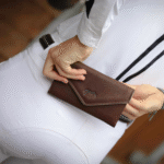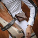 So convenient and fancy, the leather phone pocket is essential to stay connected while riding and to carry our phone everywhere we go. It fastens on the belt thanks to two buttons. It is light and easy to put on. It can have any kind of phone, even the bigger ones and remains stable at any speed. The phone cannot disturb the rider.