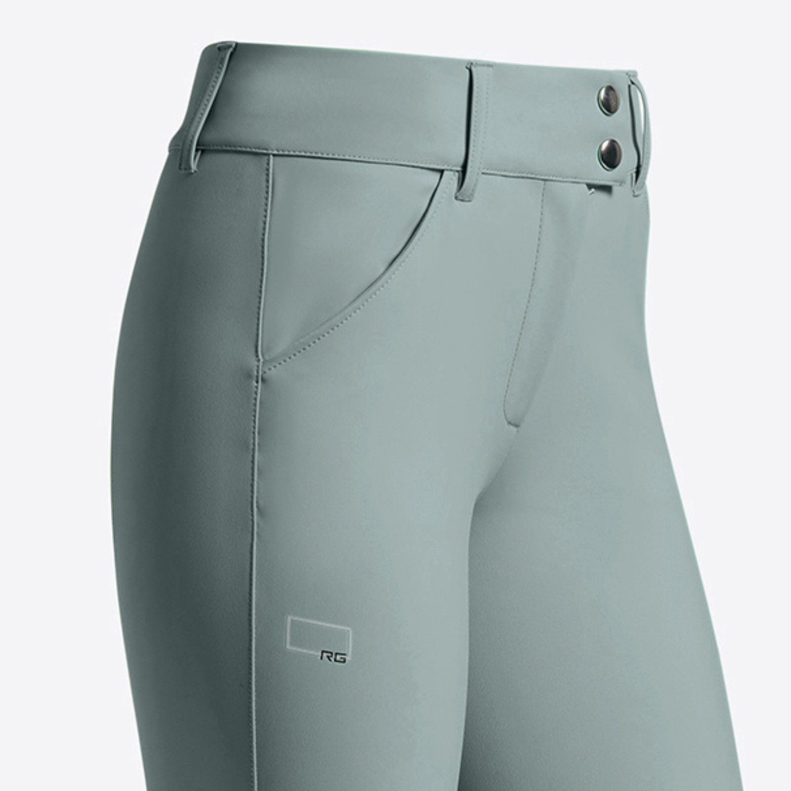 These jumping breeches are made of bi-stretch technical fabric and feature a tone-on-tone grip at knee height to ensure the right fit to the saddle. The unique feature of this model is the grip hidden inside the waistband, which is perfect for adhering to your shirt better. It features a zip closure on the front reinforced by a double button and large loops to be worn comfortably with the belt. The sock in the final part of the trousers wraps the calf under the boot and has a breathable action. The finishing with a contrasting printed RG logo gives the garment a modern look.