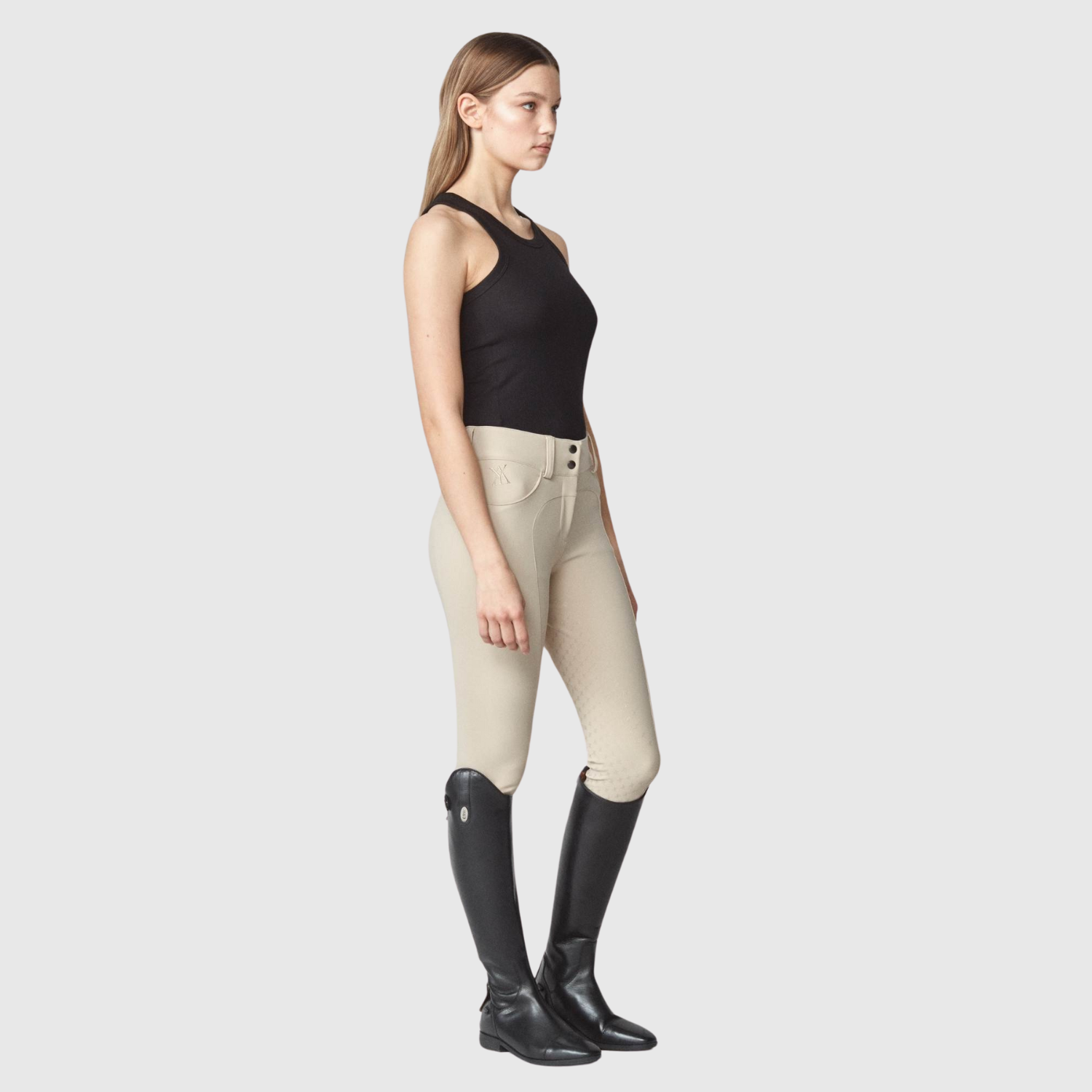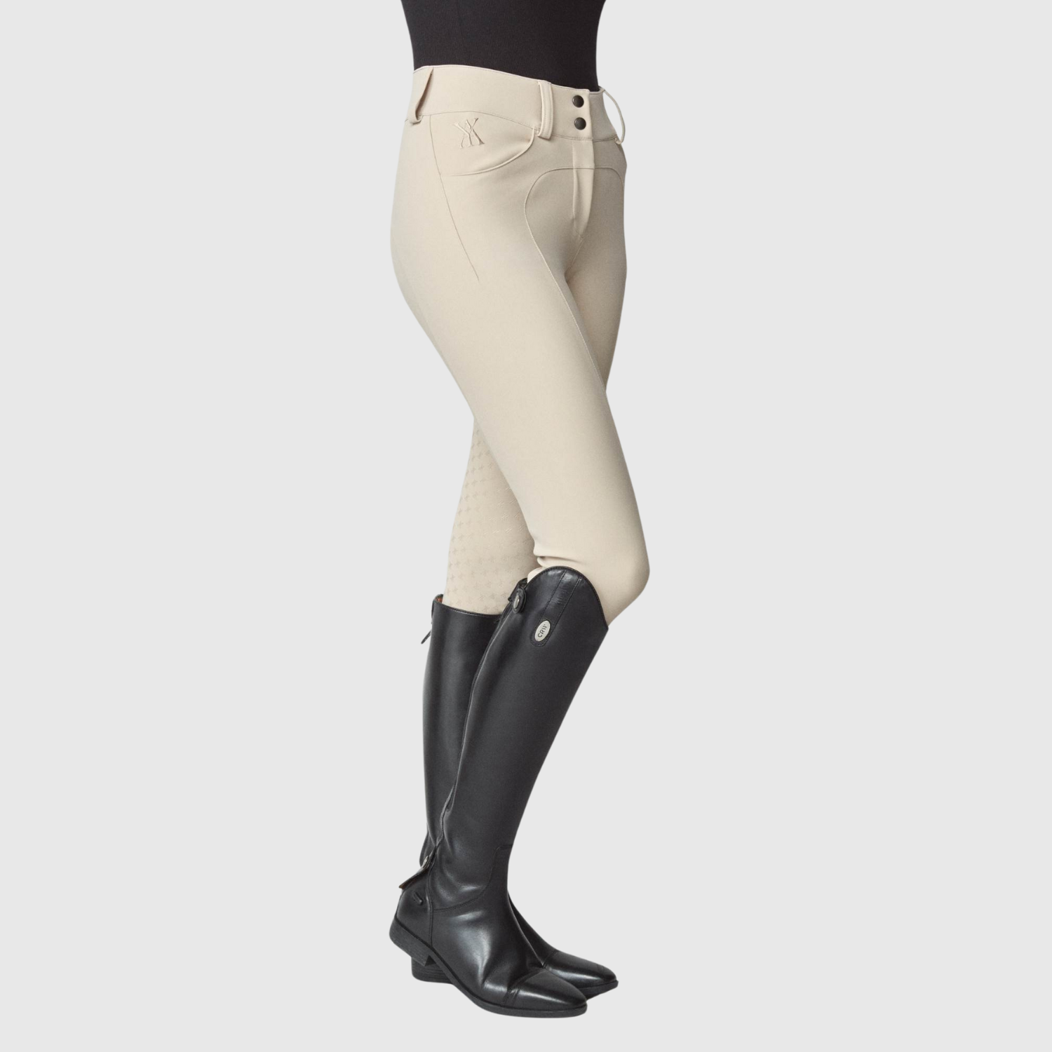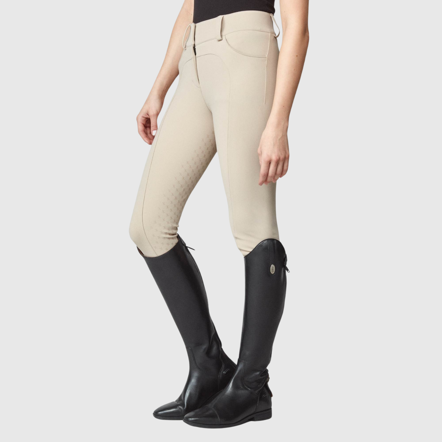 Compression riding breeches for all disciplines. Sculpting is lightweight and provides optimal movement completed with a zipper and belt loops for a classic look. Features two front pockets and minimal seams to reduce friction and keep you comfortable in the saddle. Crafted from an exclusive, lightweight yet durable Italian jersey fiber and sewn in Portugal, Europe.