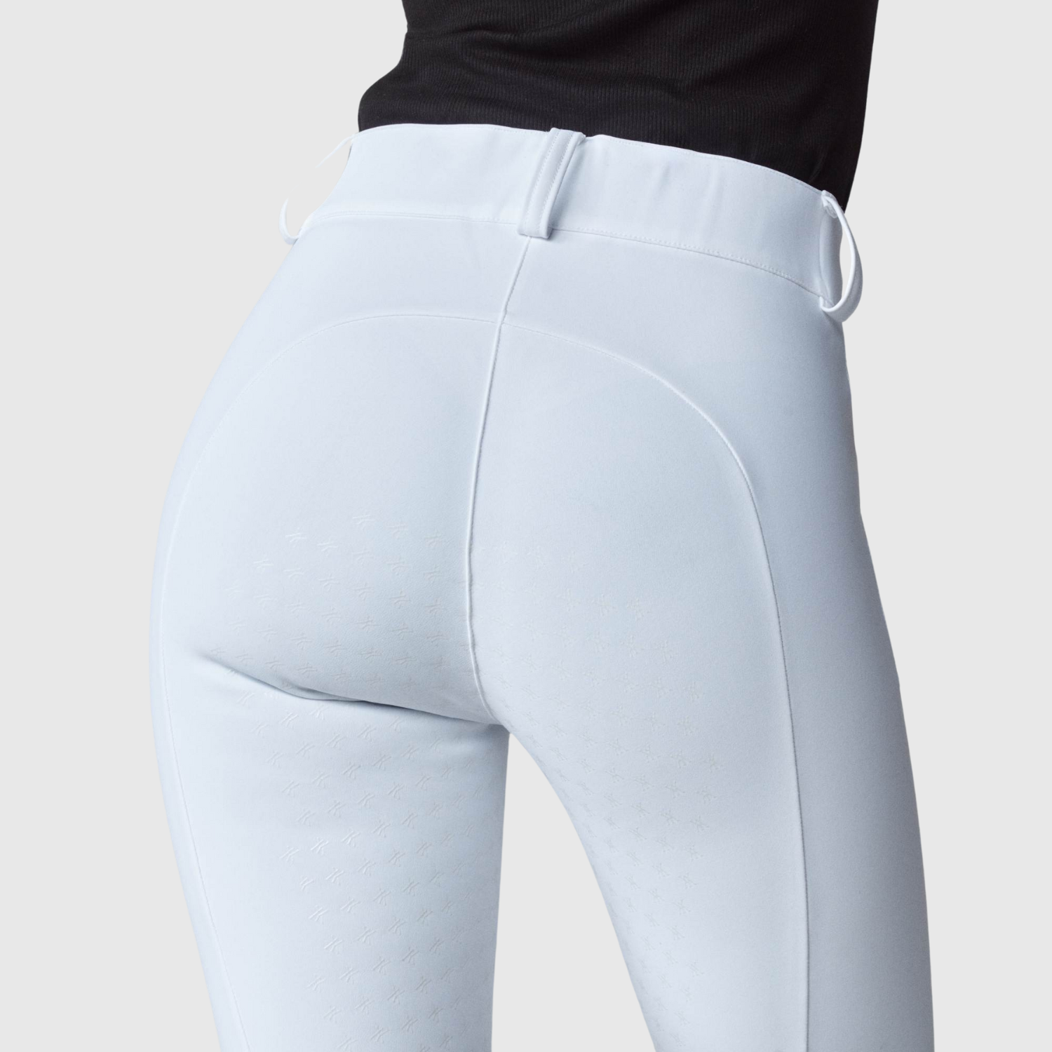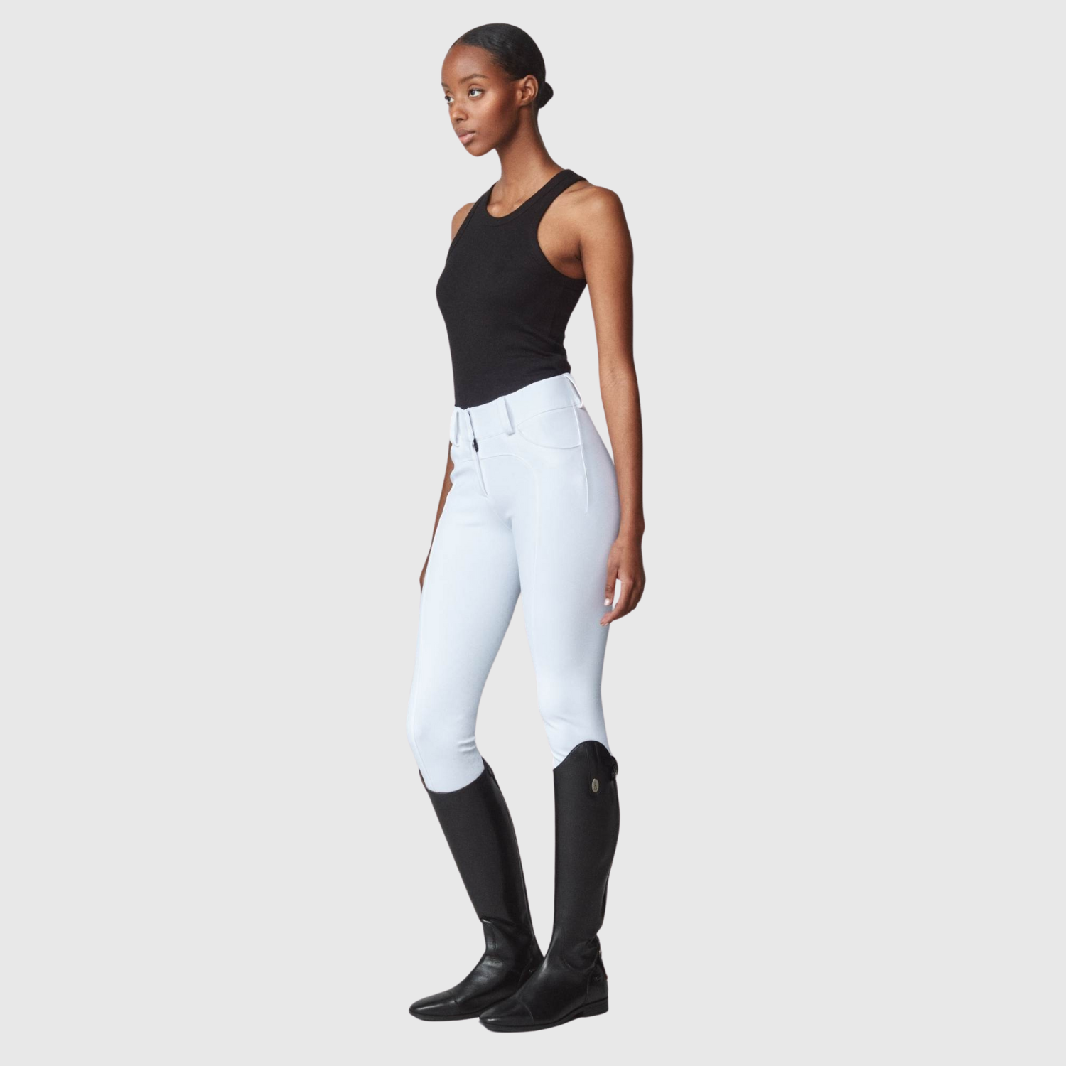 Compression riding breeches for all disciplines. Sculpting, is lightweight and provides optimal movement completed with a zipper and belt loops for a classic look. Features two front pockets and minimal seams to reduce friction and keep you comfortable in the saddle. Crafted from an exclusive, lightweight yet durable Italian jersey fiber and sewn in Portugal, Europe.