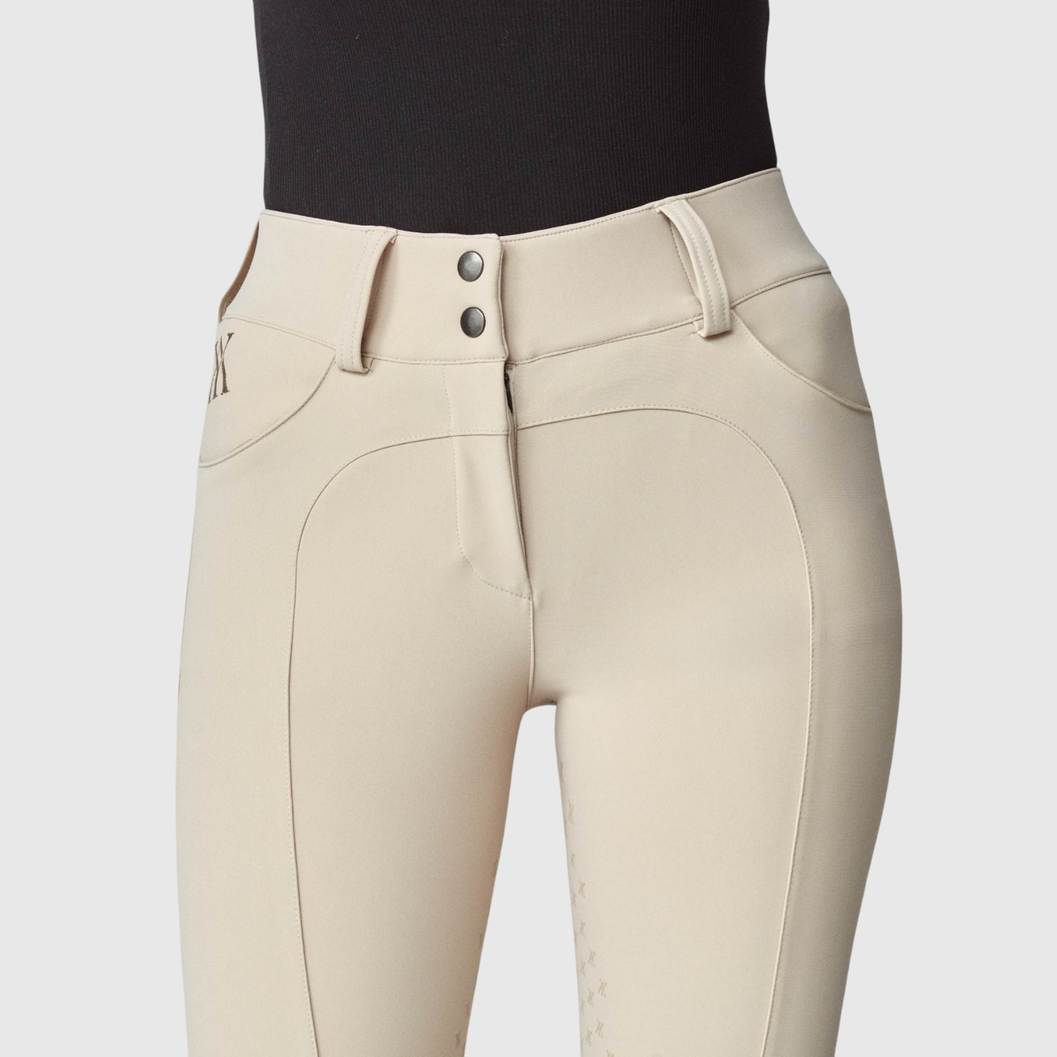 Compression riding breeches for all disciplines. Sculpting, is lightweight and provides optimal movement completed with a zipper and belt loops for a classic look. Features two front pockets and minimal seams to reduce friction and keep you comfortable in the saddle. Crafted from an exclusive, lightweight yet durable Italian jersey fiber and sewn in Portugal, Europe.