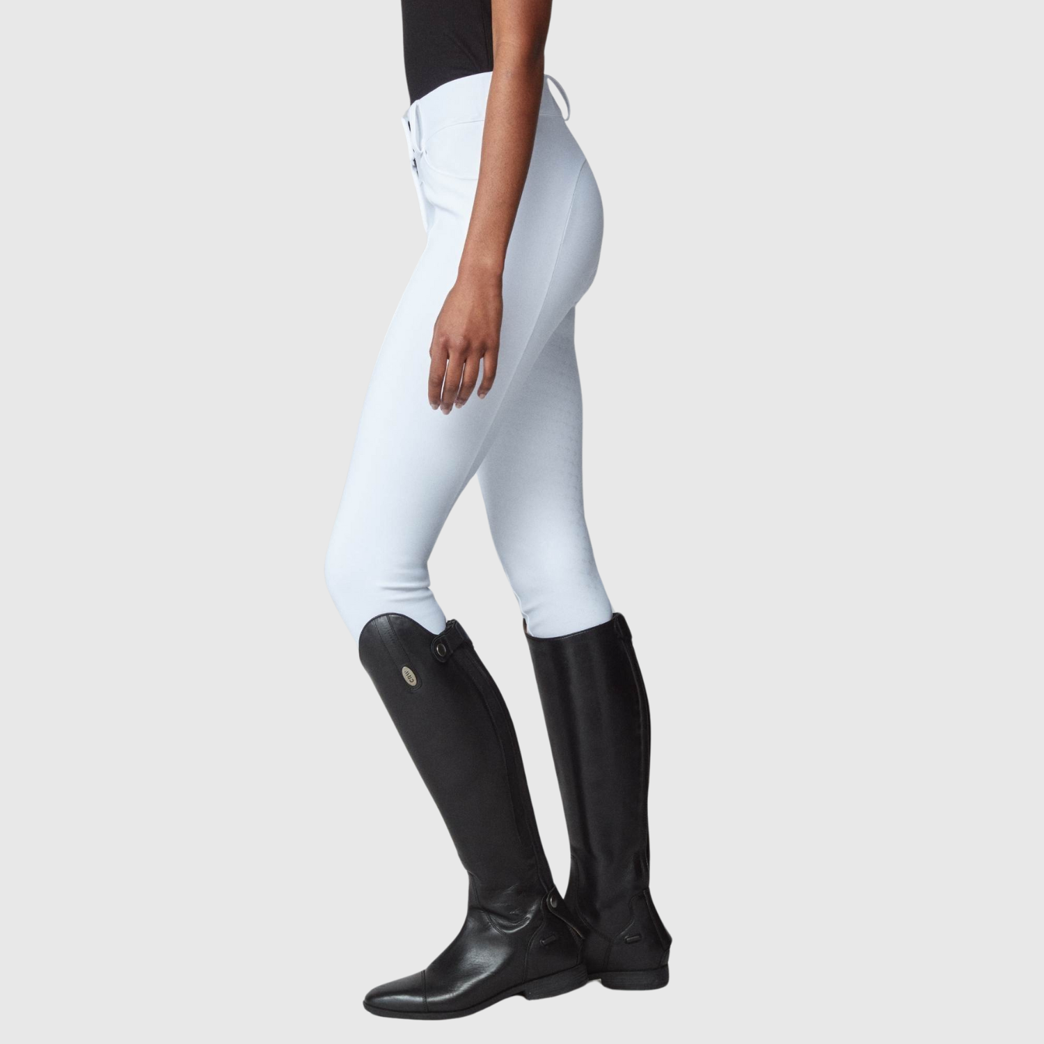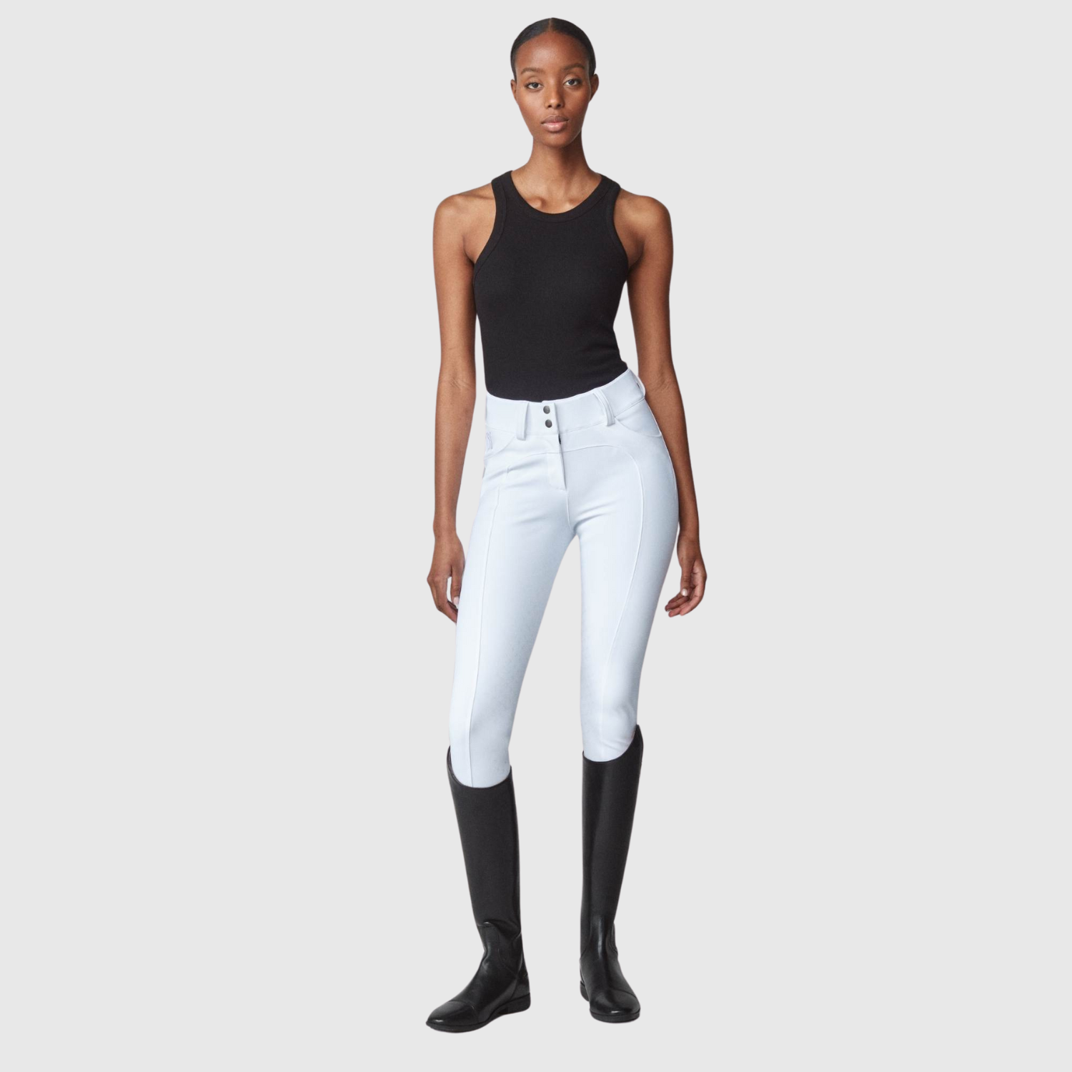 Compression riding breeches for all disciplines. Sculpting, is lightweight and provides optimal movement completed with a zipper and belt loops for a classic look. Features two front pockets and minimal seams to reduce friction and keep you comfortable in the saddle. Crafted from an exclusive, lightweight yet durable Italian jersey fiber and sewn in Portugal, Europe.