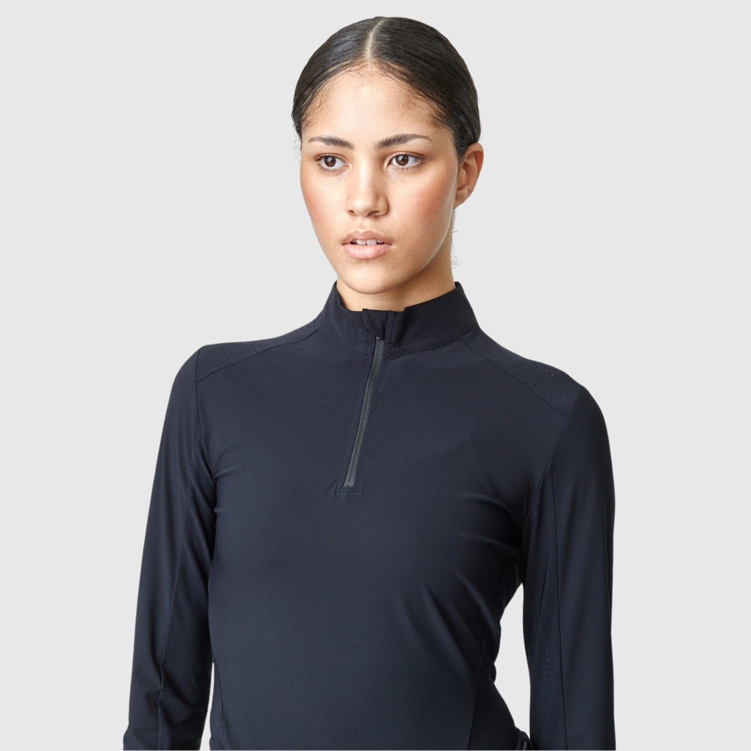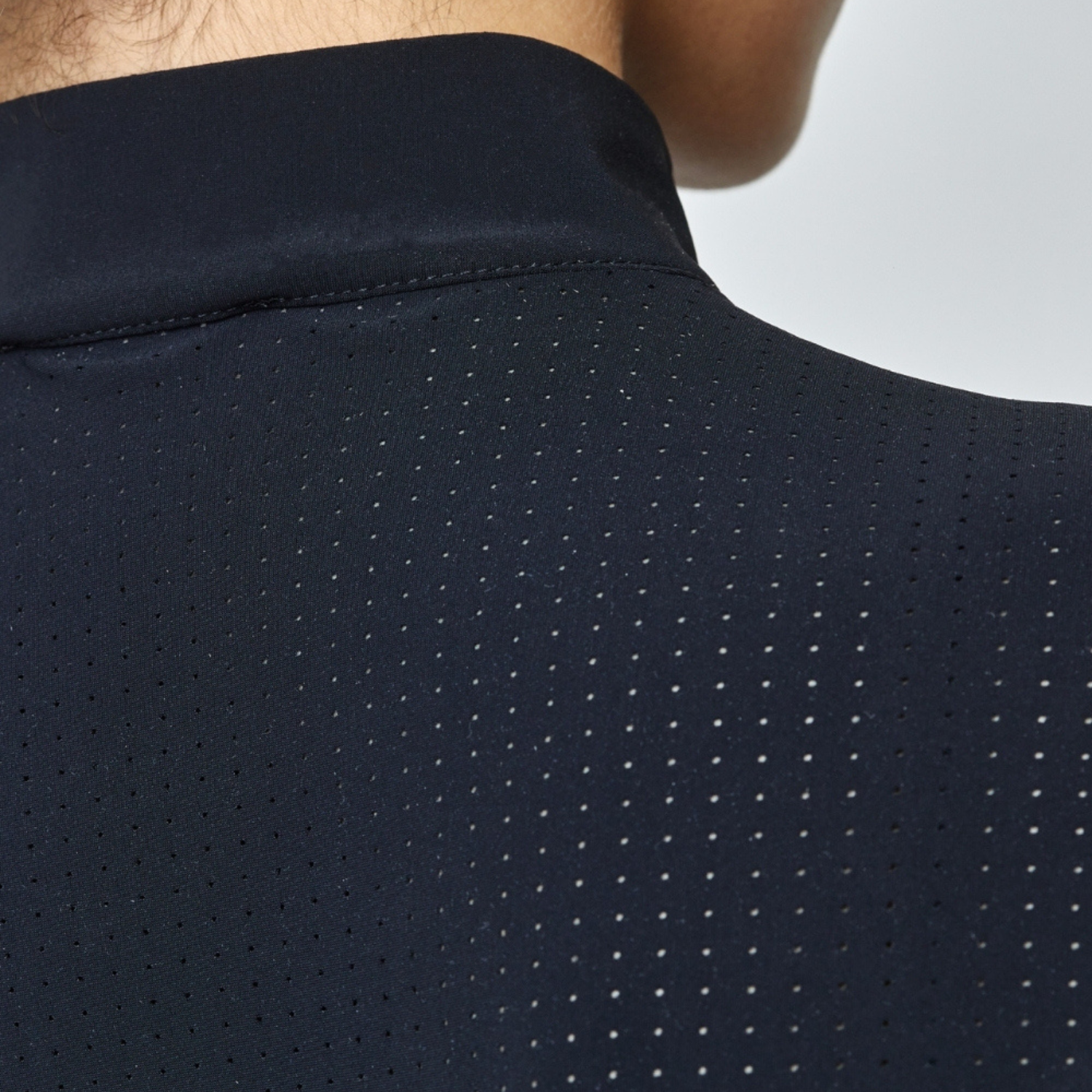 Our Performance Sun Shirt keeps you temperature-regulated and UV-protected throughout your ride. Mesh back, underarms, and shoulder details allows air to circulate, while the fibers of our Italian jersey provide built-in UV protection. Features 1/4th zipper and a firm, yet elastic, collar. The garment is fitted, but not constricting. Cut from an Italian jersey, and sewn in Portugal, Europe