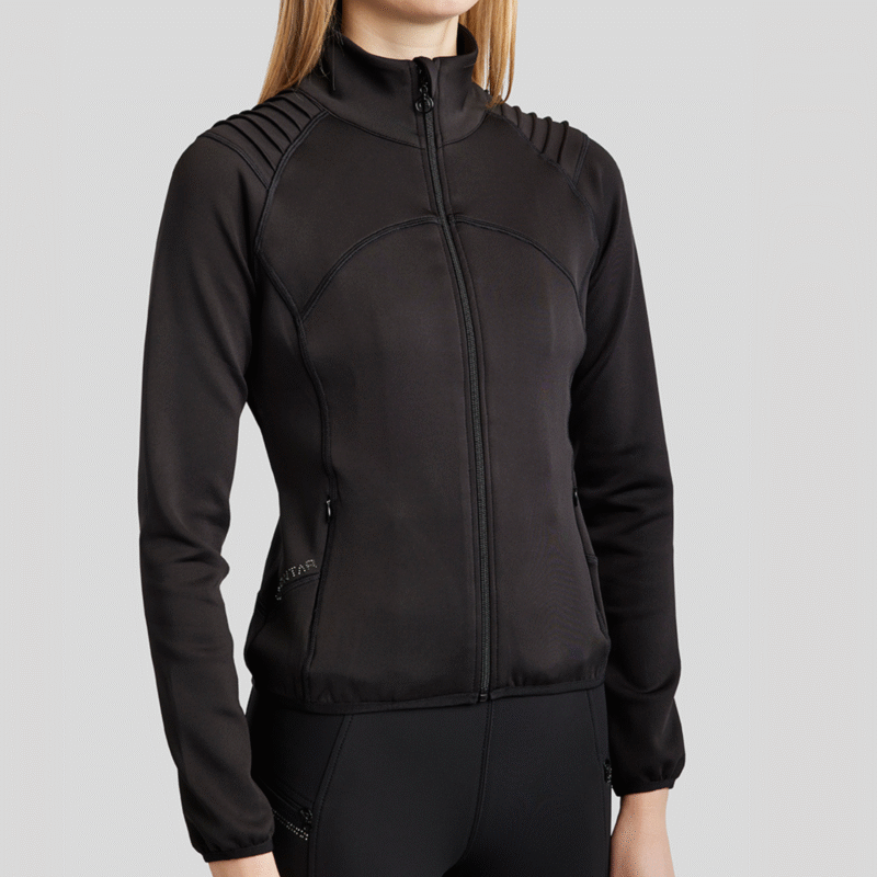 Montar MoPaige Pintucks and Crystals Full Zip Lightweight Jacket, Black