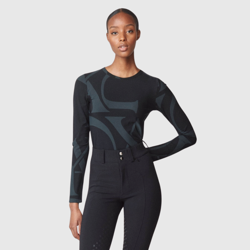Yagya Ladies Monogram Long Sleeve Shirt, Black